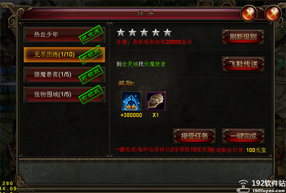 4、挑战历练任务可以快速获得角色刷经验和福利道具。