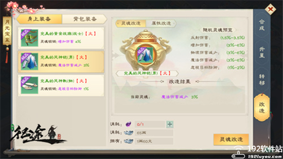 5、英雄角色穿戴的装备,可进行灵魂改造,改造后的装备,在属性上能大大提升。