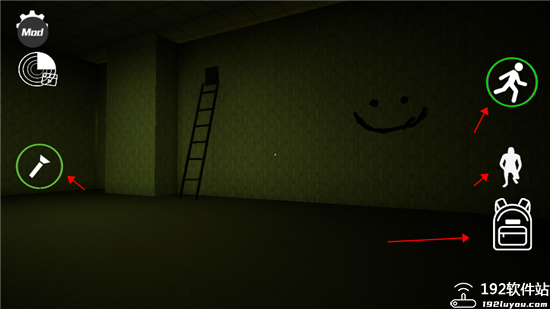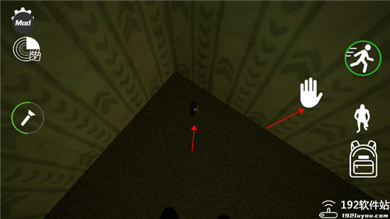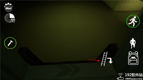 4、界面左边可打开手电筒,但是手电筒电量有限,在没有找到电池前还是精打细算的使用它吧。右边按钮为奔跑模式、蹲下潜伏、背包。