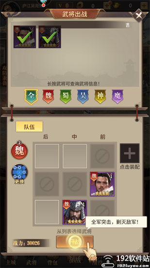 4、进入征战模式搭配要出战的武将进行闯关