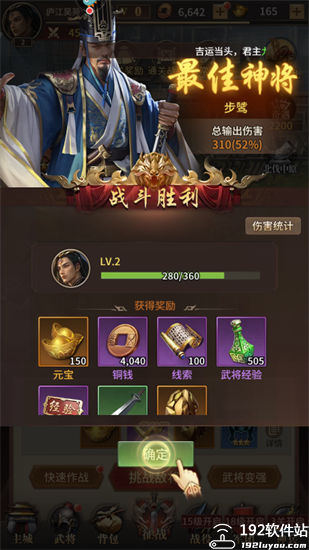 5、败敌后就能开启新关卡并领取通关奖励。
