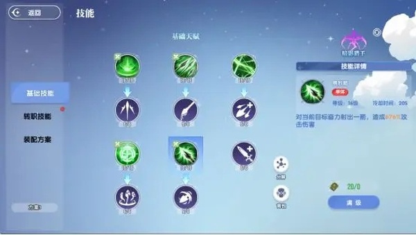 之所以不选择淬毒箭,是因为后续的毒素效果需要站在上面才会释放到,但是在PK中基本不会有人站立不动原地输出,所以这一效果的伤害将会大打折扣,在进行取舍后只能将它放弃。无论选择哪一种方案,只需要在装配里按照如图所示进行加点和依次装备,保证好释放的顺序,这样即使自动操作也能有一样的效果。