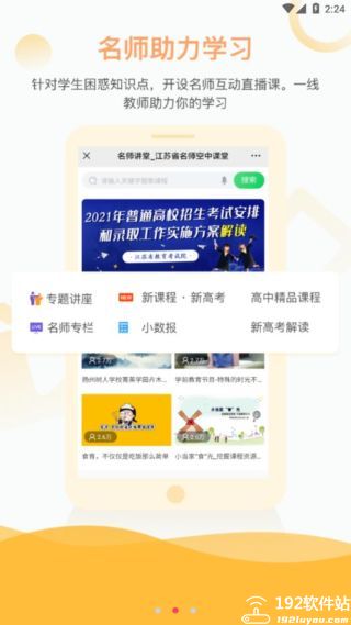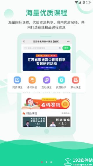 空中课堂网课app是一个网上学习平台,为中小学生打造,从一年级到九年级的课程都可以在这里学习,可作为课堂之外的一个知识补充,它和线下的学习区别会很大,比如线下在学校的时候,老师讲授知识点的时候都是实时的,如果一个分神就会错过,而这款软件中,它的视频可以随时观看,只要有需要,因此可以针对知识点学习,用于查漏补缺也很是不错哦。空中课堂中有很多的名师入驻,比如江苏锡山高级中学校长唐江澎、南京师范大学附属中学副校长孙小红等,带来更加专业的知识解答,帮助您提升成绩,非常不错。