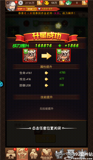 2、每个英雄角色都可通过升星来提升属性以及战力。