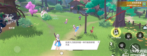 2、进入游戏场景可以看见画风建模还是非常精美立体的,然后根据任务前往冒险