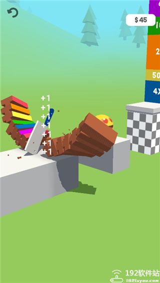 这也能切无广告版,把这些发恼想象成你前方遇到的障碍,拿起手里的小刀跟它们一刀两断。魔性的闯关设计,简单的操作玩法,玩家只需要点击屏幕上的小刀,切断前面的木头上、蛋糕塔、水果山,不要让小刀掉落在地上,或者触碰到陷阱即可,每个关卡面对的挑战不同,你可以切割的物体也是千奇百怪,但是在切割那一刻发出的音效却让人十分放松,仿佛将所有的压力都抛之脑后,无比自在。每次通关后,都可以获得金币奖励,可以在商店里换新刀具,不过该游戏已经不需要看广告就可以获得金币,玩家可以大胆选择!