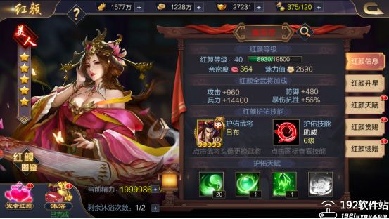2、等级越高的红颜对玩家们的等级加成也越高;