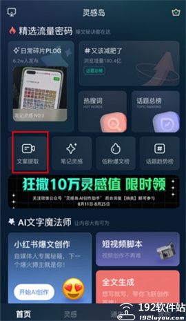 1、作为一款ai应用,功能很多,比如这里的文案提取功能;