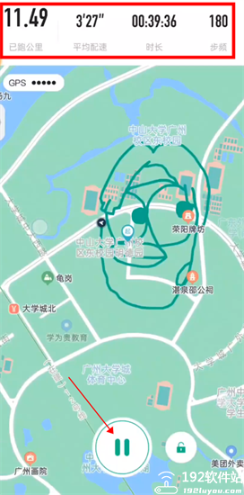 1、跑步前先打开软件上面就会实时记录当前的跑步情况,点击下方的按键就可以暂停记录