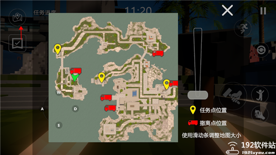 2、关卡内点击左上角的地图,即可看见所处位置以及任务标记。