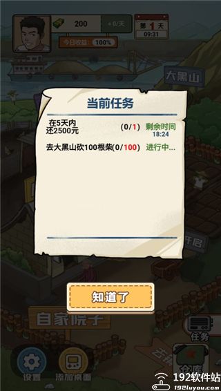 2、点击下方大大任务,你需要在5天内还2500元,以及去大黑山砍100根柴。
