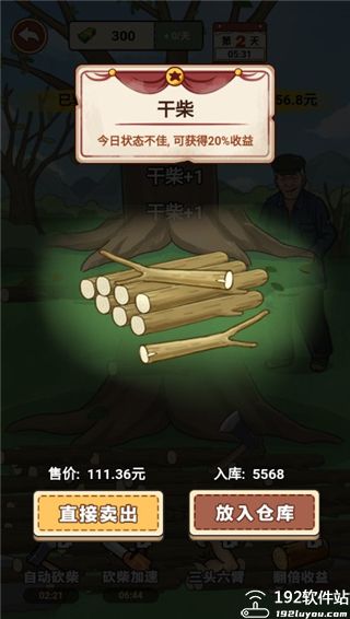 4、砍得柴可以直接卖出,也可以先放在仓库,等收益好的时候在卖。