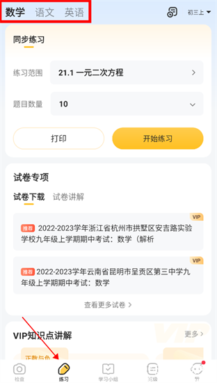 1、点击软件下方的练习频道,再上面有语数英三门课程可以进行练习