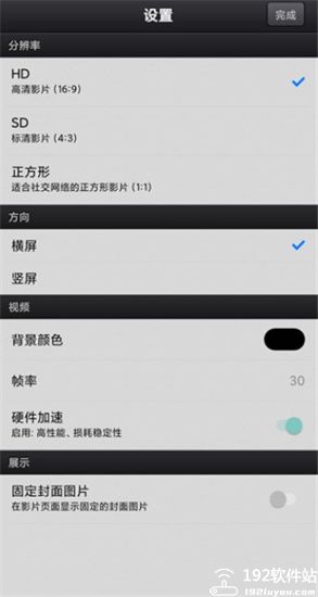3、可设置影片的各种参数,比如分辨率、方向、背景颜色等等;