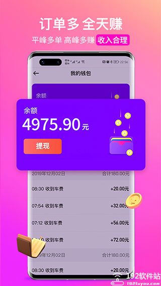 花小猪司机端拥有多样奖励制度,确保司机收入持续增加,还提供明细化的收入展示。
