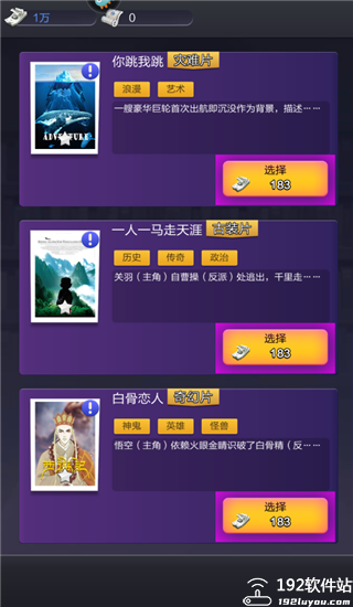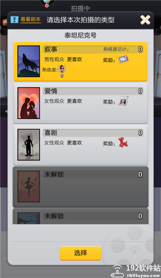 2、玩家能够根据喜好来选择拍摄各种电影,选择各种不同的影视题材,还能够自定义电影名称。