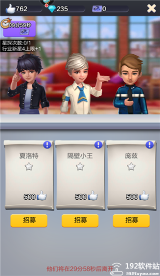 4、在星探内,玩家根据喜好来选择需要签约培养的练习生。
