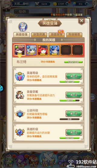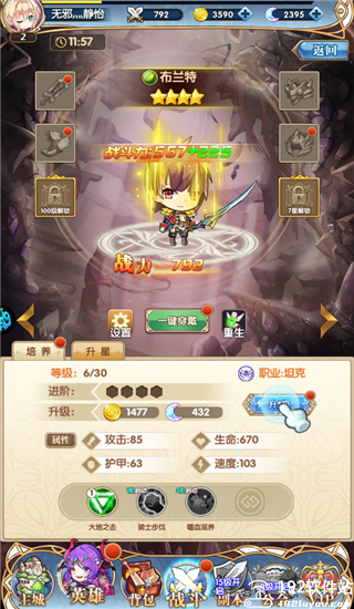 3、每个英雄角色都能够通过装备武器以及培养升星来增加属性以及战力。