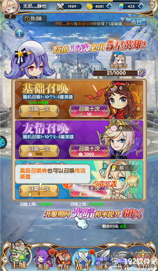 4、玩家能够通过进行不同的招募来获得不同星级的英雄,连抽必出五星极品英雄。