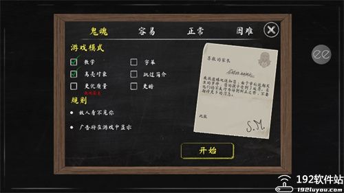 2、可以看到游戏规则,还能选择游戏模式,比如画面变得更暗,有字幕等等;
