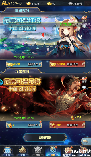 2、玩家能够通过不同的招募来获得各种三国传奇英雄,还能够获得极品红将。