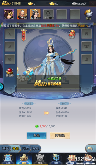 3、每个武将都能够进行单独培养,加强武将的战力值以及属性加成。
