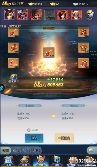 5、每个武器装备都能够进行强化、洗练、锻造等各项操作来提升来增加武器装备的属性。