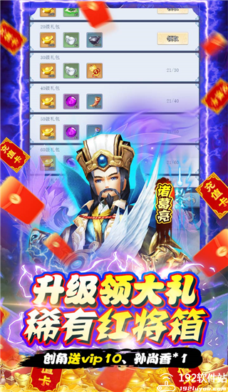 玩家能够自由组建各种不同的法阵,根据不同的属性来排列前排以及后排的武将,从而更好的发挥出每个武将的真正实力。每个武将都能够进行单独培养,升级、进阶、升星都能够使武将的属性以及战力得到大幅度提升。各种玩法精彩丰富趣味性十足,超多传奇三国武将免费获取。喜欢三国系列的小伙伴不容错过。