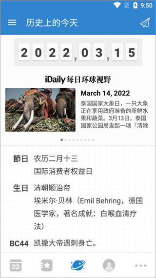 4、具备日历功能,查看历史上这天发生的大师,一键轻松查询。