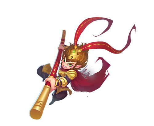 主动技能——“大闹天宫”:玩家选定一个位置,使得齐天大圣从天降下,左右各150码范围内出现巨型金箍棒,将区域内敌人击飞,造成200%的伤害,并在原地留下一个分身。玩家再次激活技能,即可回到分身位置,效果持续3秒。