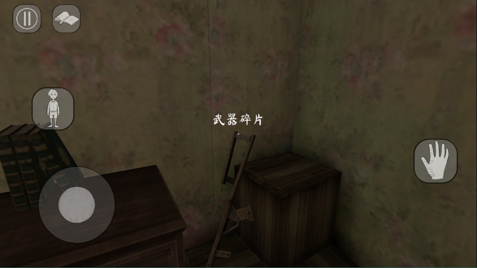 6、拾起地面的武器碎片,点击屏幕右侧手掌图标即可拾取。