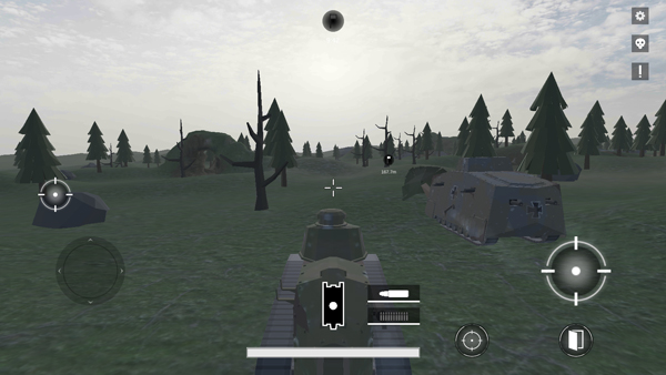 战斗中,您将体验到坦克第一人称视角,通过左侧摇杆进行移动,右侧按钮进行开火。在发射炮弹后,您需要等待5秒钟的装填时间,这期间可以切换到机枪模式。此外,炮弹的弹道也会根据物理引擎显示,为战斗增添了额外的真实感。