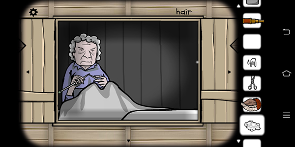 那根连接齿轮与机器的棉线……竟是老妇人的头发编织而成……剪下她的头发,为她缝制,满足她的一系列愿望后,就可以拿头发到楼上织成棉线(wool)【老妇人的头发果真坚韧】,交给她便能织出更加结实的线。