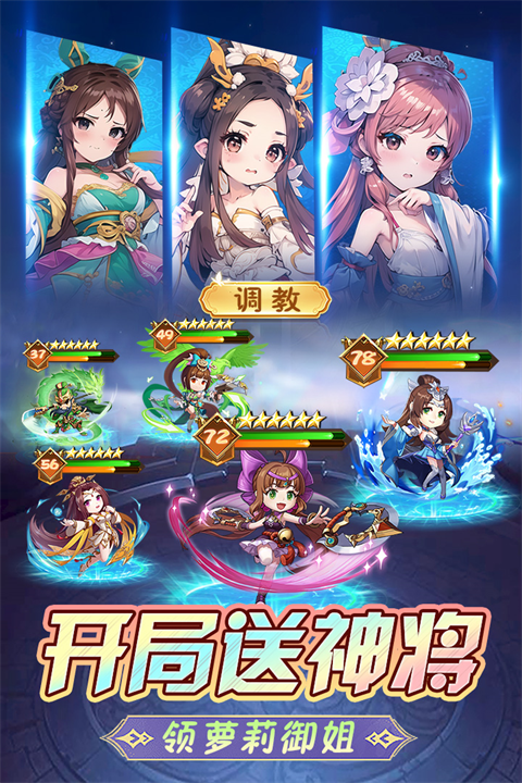 2、新玩家上线即送千次招募机会,轻松收集三国中的稀有将领。随游戏升级累积一千次武将招募机会,自由选择直至满意,构建最强阵容。