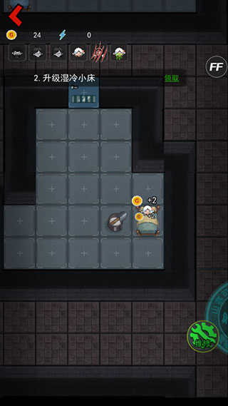 中期可以睡觉来获得金币,并升级自己的装备和属性,如升级炮台等,来增强自身的攻击力与防御力。