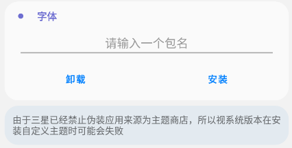 主题工具可以实现伪装apk的安装来源为三星主题商店或应用商店,使得修改后的主题被应用,字体被系统识别。修改后的apk签名变化可能导致安装失败,故需要先卸载原有主题。