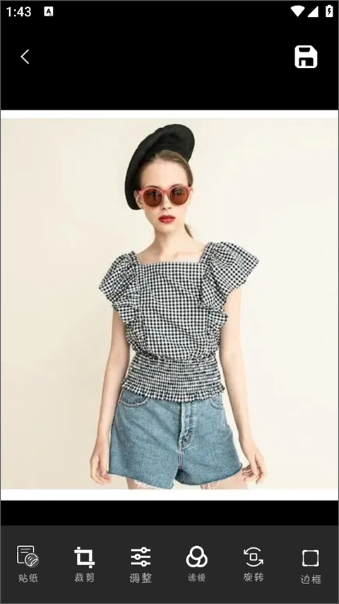 4、滤镜功能允许用户为图片添加滤镜、贴纸,进行裁剪和旋转。
