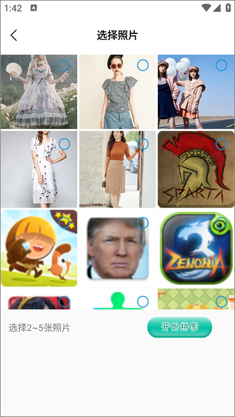 3、使用拼接功能,用户可选择相册中的图片进行拼图。