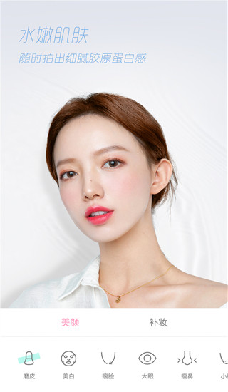 5.除了滤镜,美颜也是必不可少的,这里的美颜简直出神入化,没有不能动的地方,瘦脸都是小事儿,在美颜之后还可以进行补妆,满足不同用户对风格的要求。