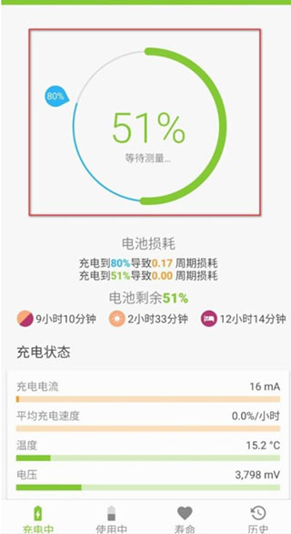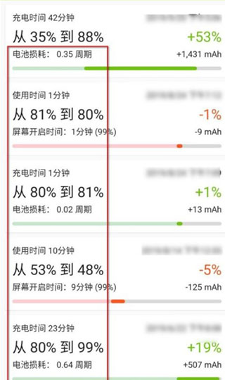 3、发现充电中的电池损耗情况。