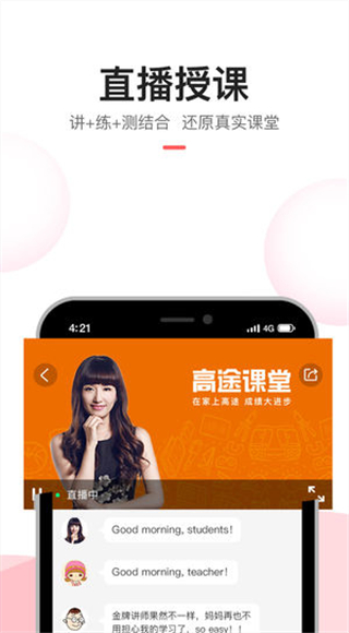 高途课堂手机app是一款可靠的线上教学平台。它在行业的知名程度应该仅次于新东方了。该平台的教学理念是通过激发学生学习兴趣的方式进行引导式学习。还将通过大数据分析等智能化模块,让学习变得高效。它能精准识别薄弱点,从而提供个性化的学习报告和改进建议。