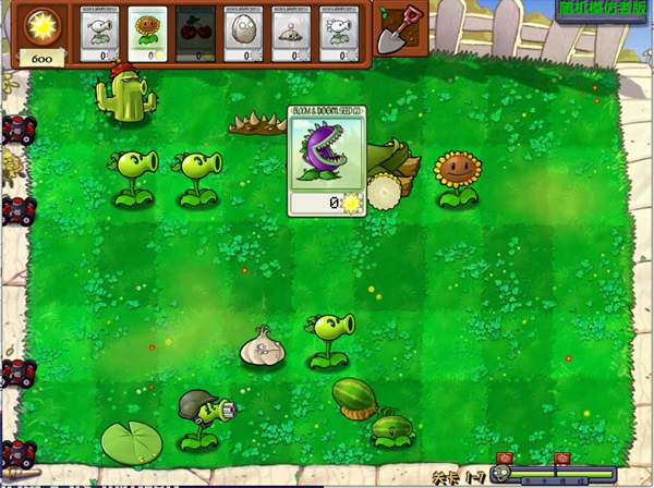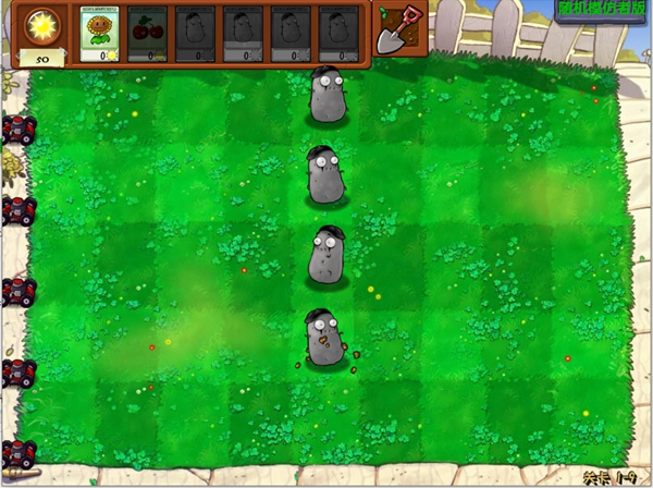 1、开始关卡时,先进行常规的植物选择,其中向日葵和樱桃炸弹是必选项。不过,一旦进入游戏,所有植物都会变为模仿者。