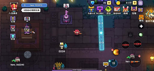 游戏为了增加趣味性,这里打造五大职业,战士、法师这种,不是传奇里的那种职业哦,不管是战士还是法师,都是弹幕射击类型,但它们会有技能,比如增强弹幕射击伤害,给自己回血这种,无疑是加强玩家操控的角色,让您打怪更快。游戏福利也不错,职业需要养成,越养越厉害,这里上线就能领取大礼包,而且装备钻石都能在地牢中开宝箱获取,让您轻松养成。