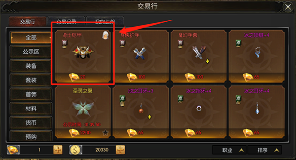 您可以根据这些交易分类,迅速地找到您想要购买的道具装备。