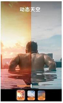 从众多动态天空效果中选择,仿佛是用延时摄影技术拍摄的