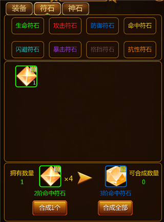 3、关于符石合成:您只需要4个同级别的符石就能合成一个高一级的符石,这些合成后的符石可以镶嵌到角色界面的符石板块中。请注意,该符石功能需要玩家达到32级才能解锁。