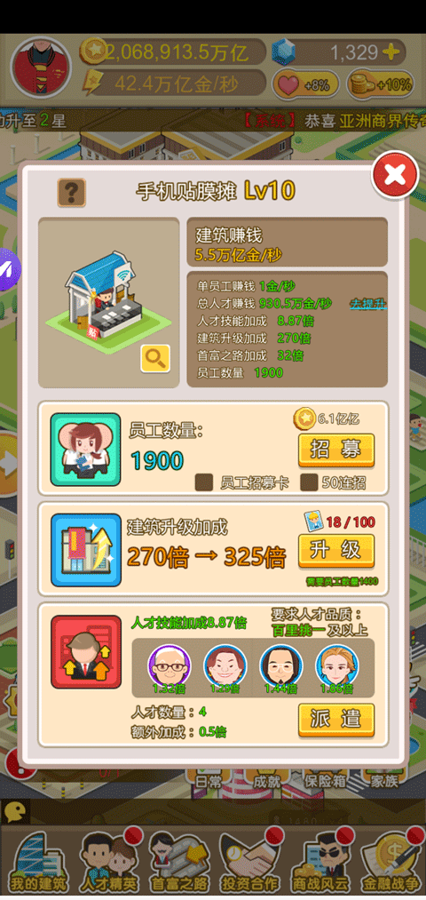 发掘并提升人才同样是加快赚钱进程的又一方法。将人才安排至特定建筑后,他们的技能就会激活,给予建筑额外技能加成,由此带来赚钱速度的进一步提升。