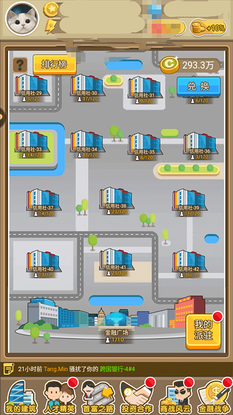 7、谈完家族,再聊聊金融战争。金融战争是游戏的一大特点,控制金融点可以获得金融币。务必每日兑换投资卡、管理卡等,对于奥斯卡奖及赚钱卡来说,非冲刺阶段的玩家可有可无。