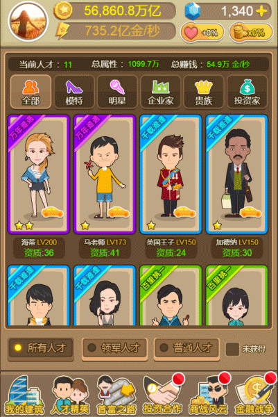 通过消费人才经验,我们可以对他们进行提升等级,这些经验通常是通过“致富之路”或者直接投资来获取。当一个人才已经成长至满级时,要想继续提升他们,就需要利用知名奖项——比如奥斯卡奖、格莱美奖或普利策奖——作为升星的资源,升星能够提高人才的等级上限,从而继续其成长进程。