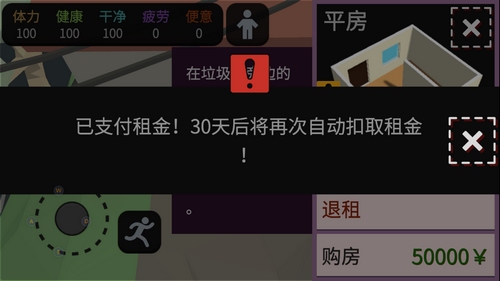 4、当积攒到1000元时,我们可以租下自己的第一个小屋。本作中的租金按月支付,拥有了自己的小窝后,我们可以购买家具来解锁更多赚钱的途径。所以不必过于在意这1000元的初始投资。